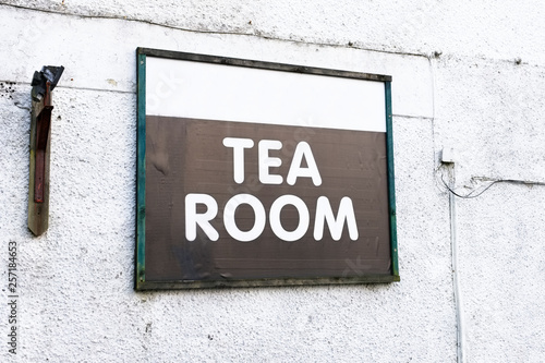 © Richard Johnson, Obraz premium Tea room cafe sign on white wall uk
