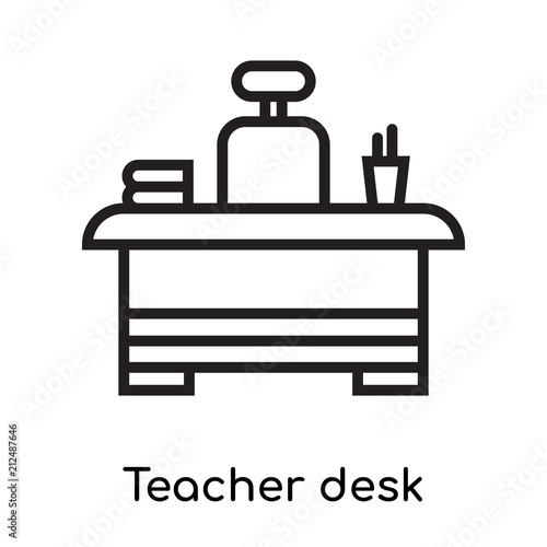 Obraz premium Teacher desk icon vector sign and symbol isolated on white background, Teacher desk logo concept