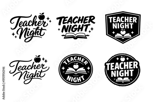 © 4zevar, Fototapeta premium Teacher night logo set with book and apple elements