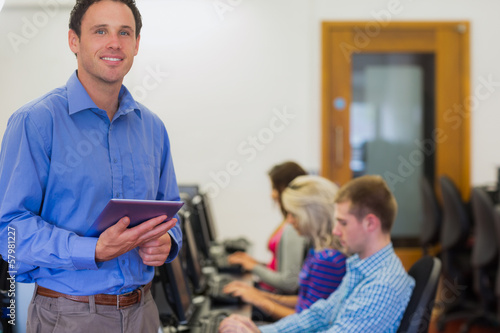 © WavebreakmediaMicro, Fototapeta premium Teacher with students using computers in computer room