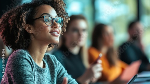 © Sisana, Obraz premium Teachers attending a professional development workshop, taking notes and engaging with a presenter.