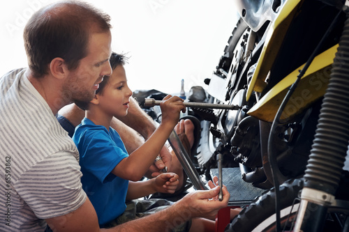 © Daxiao Productions, Fototapeta premium Teaching his son a new masculine skill