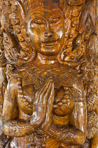 © kaentian, Fototapeta premium Teak-wood carving is a form of literature.