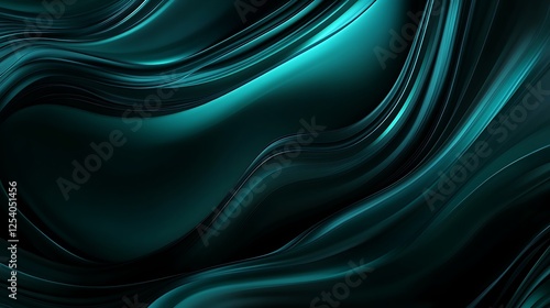 © lisa, Fototapeta premium Teal abstract waves, dark background