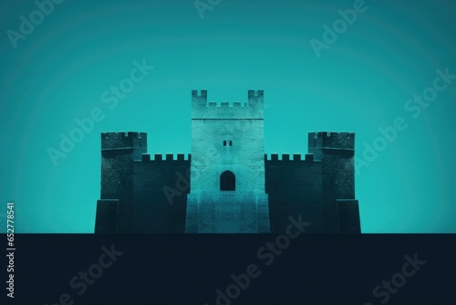 Obraz premium Teal and Blue Castle Minimalism in a negative artistic space. Visual abstract metaphor. Geometric shapes with gradients.