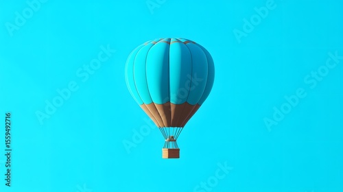 © Samima, Obraz premium Teal and Brown Hot Air Balloon on Blue Sky Background