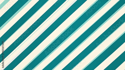 © MASJAB, Obraz premium Teal and Cream Diagonal Stripes.