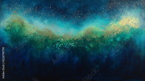 Obraz premium Teal and lime gradient with metallic textures and glitter particles