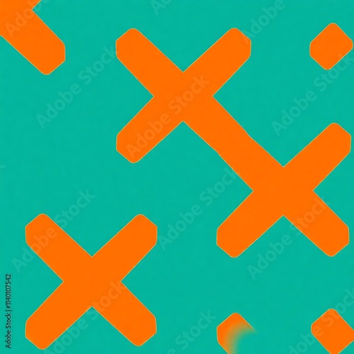 Obraz premium Teal and Orange Abstract Cross Pattern: A dynamic, minimalist design featuring bold orange crosses against a vibrant teal backdrop.