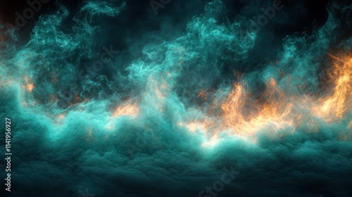 © mochalfin, Fototapeta premium Teal and orange fire and smoke abstract background.