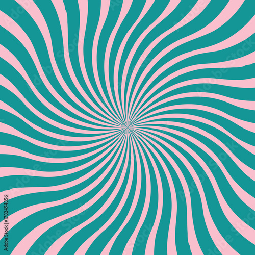 Fototapeta premium Teal and pink spiral pattern with radiating lines from the center creating a...