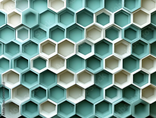 © queen, Fototapeta premium Teal and White Hexagon 3D Illustration