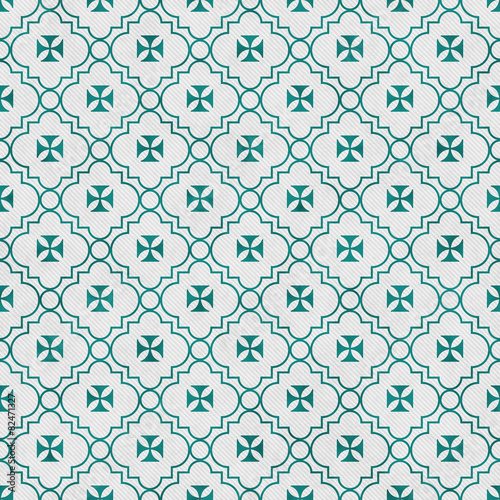 © Karen Roach, Fototapeta premium Teal and White Maltese Cross Symbol Tile Pattern Repeat Backgrou