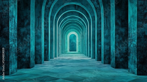 Fototapeta premium Teal Archway Corridor, Abstract