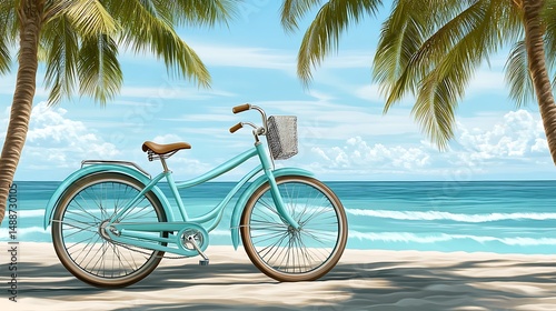 Fototapeta premium Teal bicycle on sandy beach