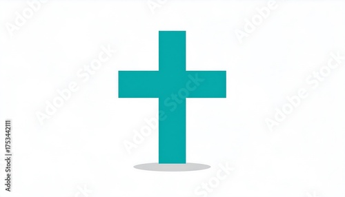 © zul, Obraz premium Teal Christian Cross Symbol on White Background for Religious Concepts.