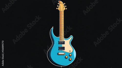 Obraz premium Teal electric guitar, studio shot, musical instrument