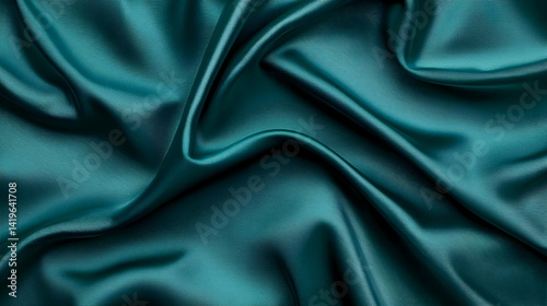 Fototapeta premium Teal Fabric Texture With Draped And Wrinkled Details