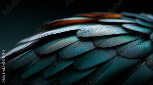 Obraz premium Teal Feathers: A Close-Up Macro Photography of Avian Plumage