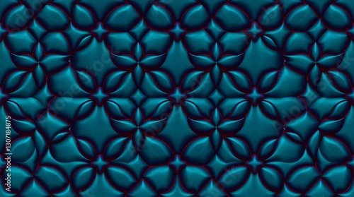 Fototapeta premium Teal Flower Pattern: A repeating pattern of stylized teal flowers fills the...