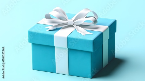 Fototapeta premium Teal Gift Box with White Ribbon Bow, Present Package
