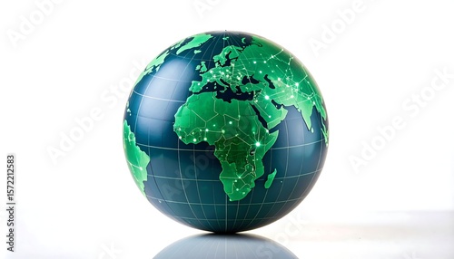 Fototapeta premium Teal globe, green map, digital connections