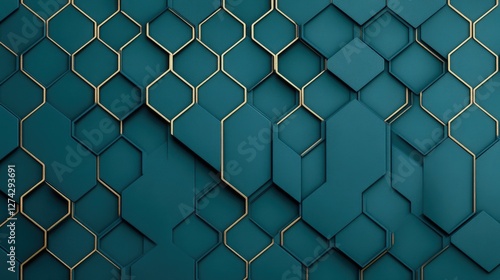 © Dizzi, Fototapeta premium Teal gold hexagon pattern background