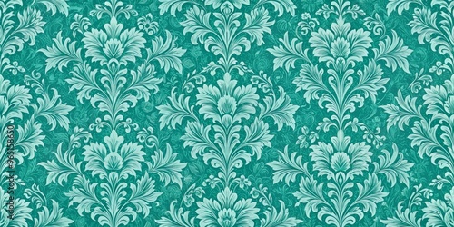 Fototapeta premium Teal Green Baroque Floral Pattern, Wallpaper, Rococo, Baroque Style, Pattern, Digital Art, Floral Design