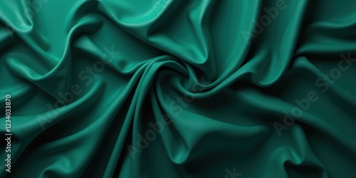 © AiPhotoSale, Obraz premium Teal-green fabric glimmers with a glossy sheen, its textured surface catching light in intricate patterns, inviting touch and sight