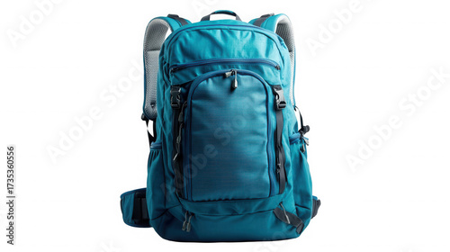 Fototapeta premium Teal hiking backpack isolated on transparent background for outdoor activities