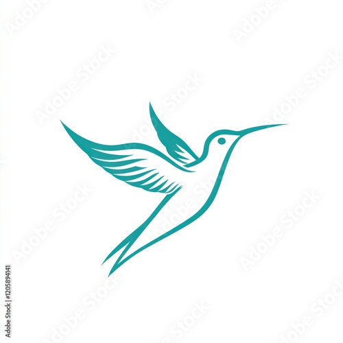 Fototapeta premium Teal hummingbird in flight, white background, nature, design