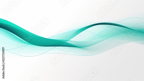 © EsterDyah, Obraz premium teal lines or waves, on solid white background, abstract presentation slide background, professional look, corporate illustration