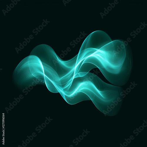 Obraz premium Teal luminous wave, abstract flowing form, dark background