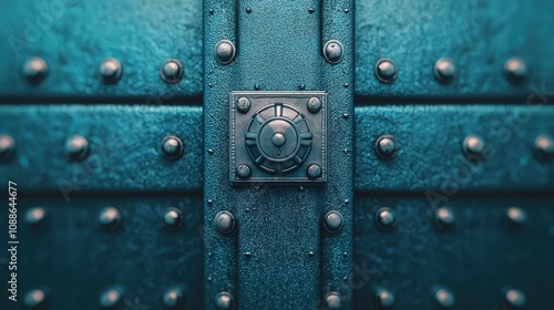 Fototapeta premium Teal Metal Safe Door Security Combination Lock Rivets Texture
