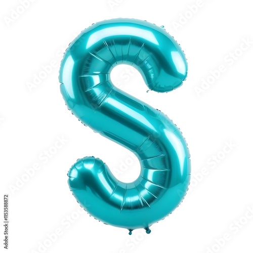 Naklejka premium Teal metallic balloon letter S, floating against a white background