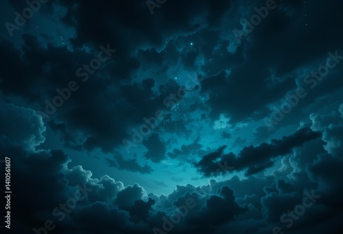 © Tanish, Fototapeta premium Teal Night Sky