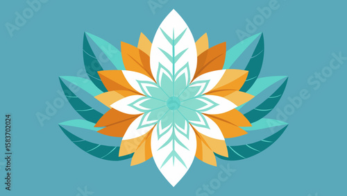Fototapeta premium Teal Orange White Layered Feather Flower Vector Graphic