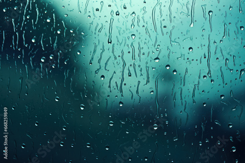 Fototapeta premium Teal Raindrops on Glass Background