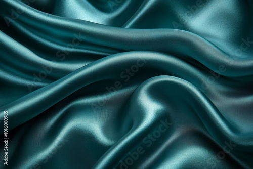 Obraz premium Teal Satin Fabric Draped Background Texture