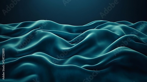 © Muhamad, Obraz premium Teal Silk Drapery Waves Abstract Background