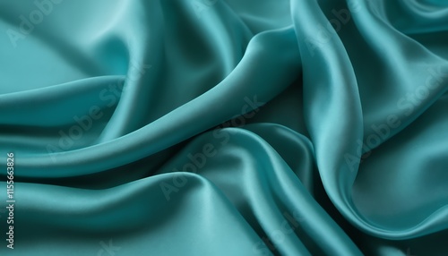 Obraz premium Teal Silk Fabric Draped Luxurious Soft Smooth Flowing Waves Texture