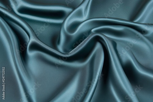 © Yusnira, Obraz premium Teal silk fabric drapes, studio backdrop, elegant texture, design
