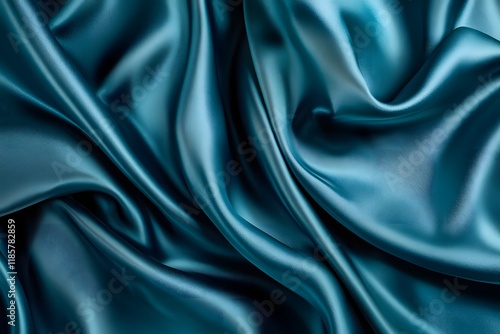 Obraz premium Teal silk fabric drapes, studio shot, smooth texture, elegant background, design resource