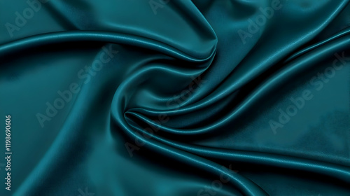 © Siasart, Obraz premium Teal Silk Fabric Flows and Gathers Elegantly, Creating Luxurious Drapes