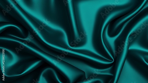 © Mosaic Mind, Obraz premium Teal Silk Fabric Texture - Luxurious Drape
