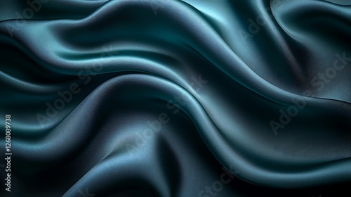 © budiyono, Obraz premium Teal silk fabric waves, dark background, studio shot, textile design