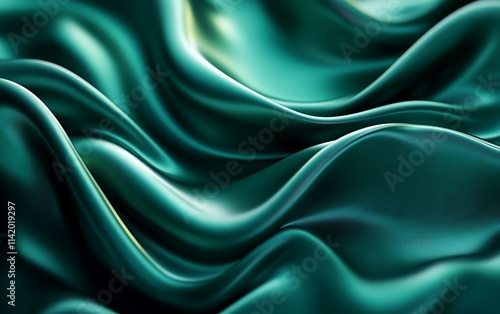© Ruqqq, Obraz premium Teal silk fabric with elegant flowing waves and soft highlights.