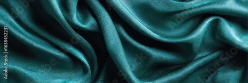 Fototapeta premium Teal silk fabric with flowing drapes (2)