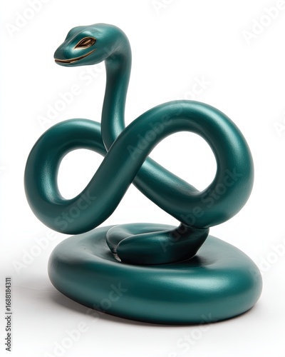 © Hamid, Fototapeta premium Teal snake figurine, coiled in infinity symbol, on a teal base
