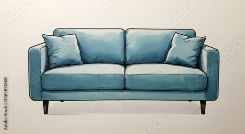 Fototapeta premium Teal sofa drawing illustration